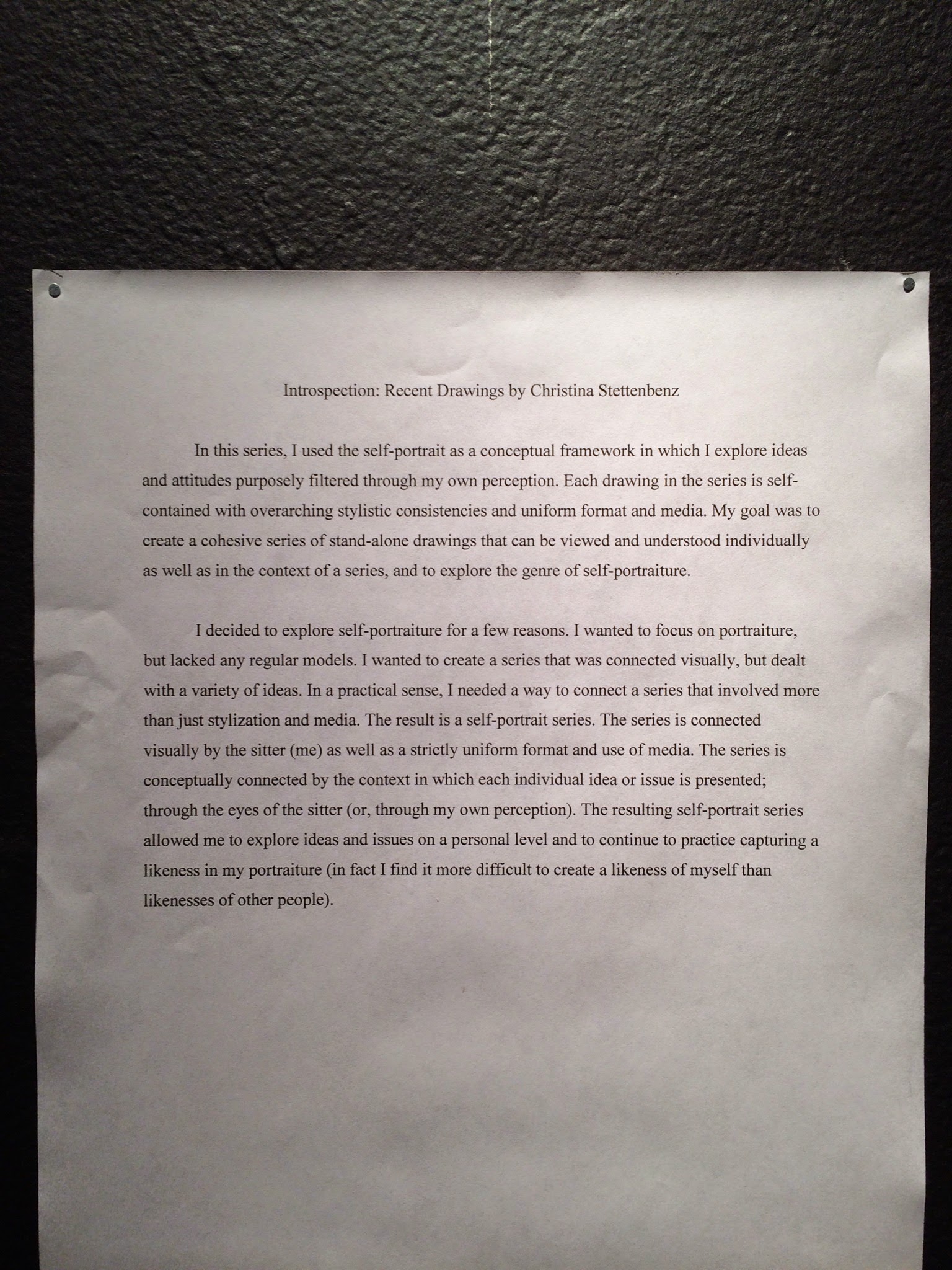 Introspection: Christina Stettenbenz – January 26th-30th, 2015 January 28, 2015November 4, 2015 | Prof. Brian Share this: Share on Facebook (Opens in new window) Facebook Share on X (Opens in new window) X Like Loading... Related